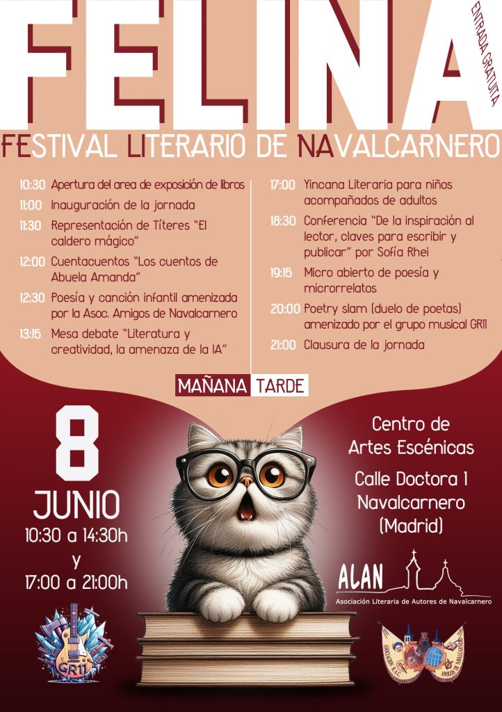 ¿Qué es FELINA? Se trata del 𝙁𝙚𝙨𝙩𝙞𝙫𝙖𝙡 𝙇𝙞𝙩𝙚𝙧𝙖𝙧𝙞𝙤 𝙙𝙚 𝙉𝙖𝙫𝙖𝙡𝙘𝙖𝙧𝙣𝙚𝙧𝙤, organizado por la 𝘈𝘴𝘰𝘤𝘪𝘢𝘤𝘪ó𝘯 𝘓𝘪𝘵𝘦𝘳𝘢𝘳𝘪𝘢 𝘥𝘦 𝘈𝘶𝘵𝘰𝘳𝘦𝘴 𝘥𝘦 𝘕𝘢𝘷𝘢𝘭𝘤𝘢𝘳𝘯𝘦𝘳𝘰,